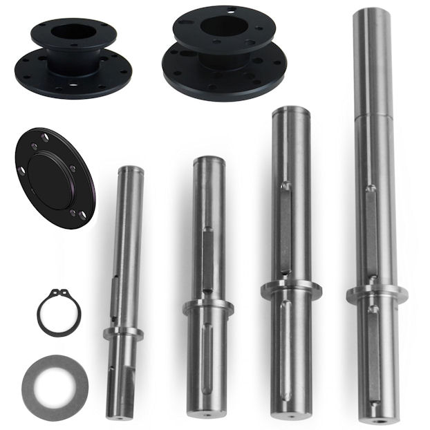 Our new accessory kits for hollow shaft gearmotors add more versatility and flexibility to this growing product line. We offer stainless steel single shaft and double shaft kits, as well as aluminum shaft covers and mounting flanges. Now in stock.