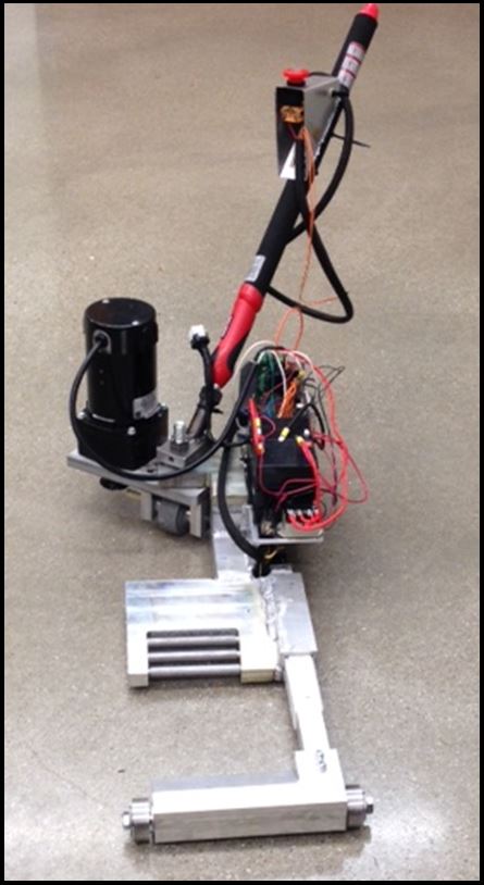 We want to congratulate the “Purdue Prop Pullers” for their success with their Fall 2013 senior design project! P.E.T. is a portable electric tow-bar for a small plane. The purpose of this device is to enable the pilot to pull his/her plane short distances around a hangar with minimal effort. The team’s objective was to design a small portable, aesthetically pleasing, self-propelled tow-bar that runs on battery power. The tow-bar is first maneuvered around the front wheel of the aircraft, then the lifting mechanism closes and lifts the plane wheel off the ground. The device then proceeded to pull the plane along the ground.