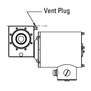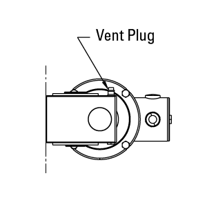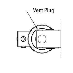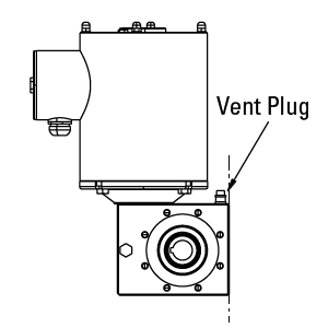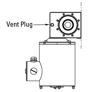 - Vertical mounting positions: To mount the gearmotor so that the shaft is oriented vertically, make sure that the vent plug is at the top of the gearbox face as shown.